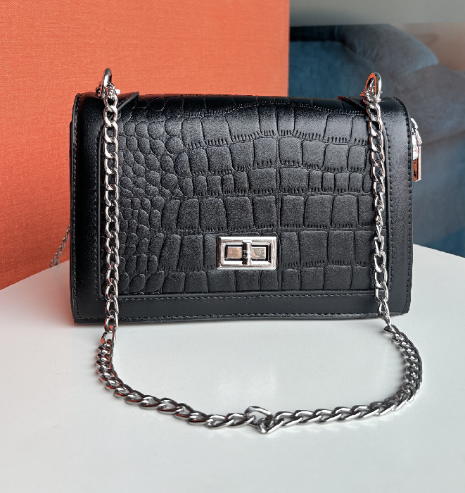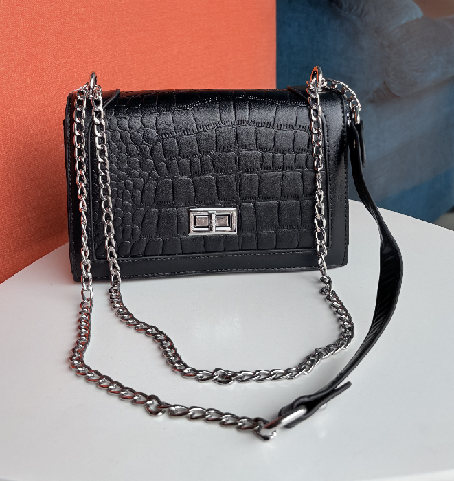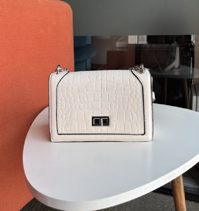 Dual Chain Sling Bag Dual Chain Strap: Stylish silver-tone dual chain strap with a detachable, wide PU shoulder strap for versatile carrying options. Secure Closure: Twist-lock closure to keep your essentials safe. Spacious Interior: Compact yet roomy enough for your phone, wallet, keys, and small essentials. Perfect for All Occasions: Ideal for daily outings, brunches, parties, and travel. Available in White and Black to suit your style. |